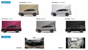 Với Volkswagen Viloran 2025 khách hàng sẽ có tuỳ chọn màu đa dạng với nhiều sự lựa chọn khác nhau đáp ứng cả sở thích, xu hướng thời trang lẫn yếu tố phong thuỷ. Theo đó, mẫu MPV này mang đến 5 tuỳ chọn màu ngoại thất bao gồm: Vàng Đồng (Brisbane Gold Metallic), Trắng Ngọc Trai (White Pearl), Đỏ Rượu Vang (Crimson Red Metallic), Bạc Ánh Kim (Leaf Silver Metallic) và Đen Đặc Biệt (Deep Black Metallic). Đi cùng với đó là 2 tuỳ chọn màu nội thất là Nâu và Be.